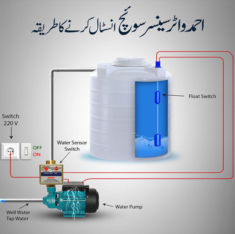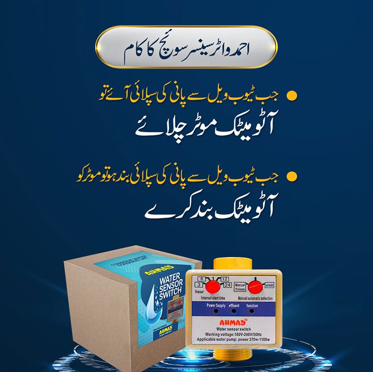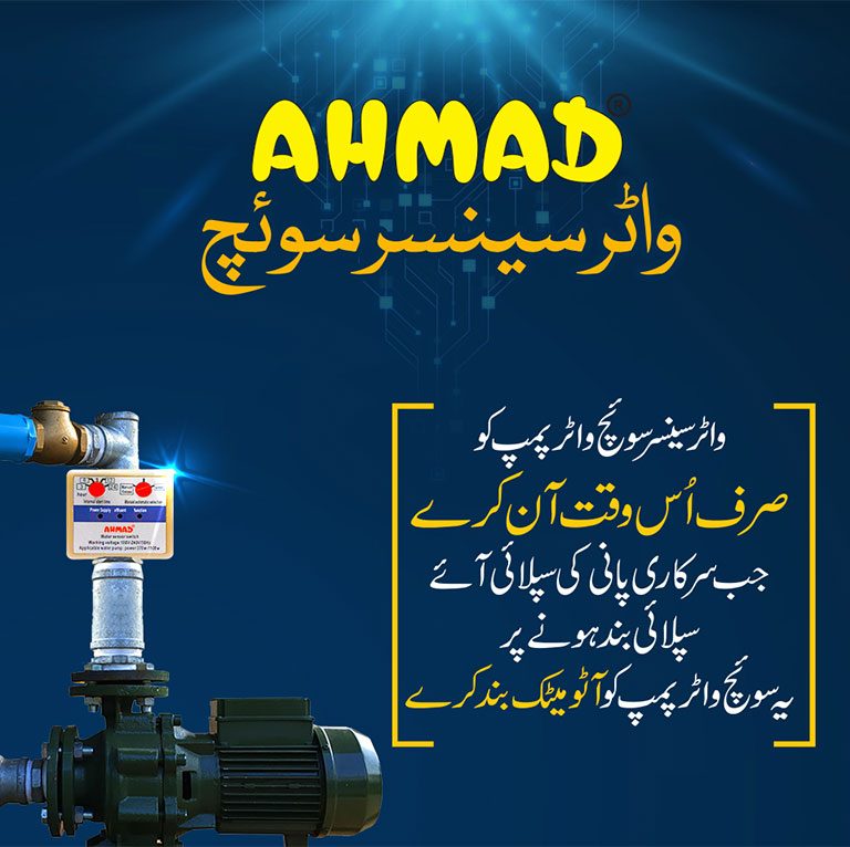 Ahmad Water Sensor Pump Controller Switch is a smart automatic device designed to control and protect your water pump based on real water flow detection. It keeps the motor running only when water is available and instantly turns the pump OFF when water supply stops — protecting the motor from dry run damage.